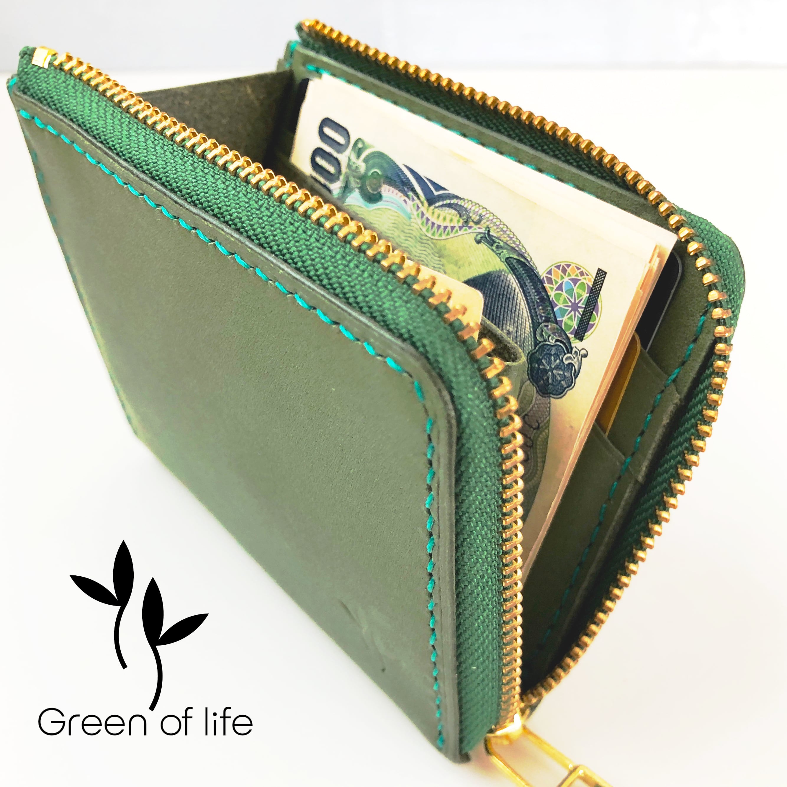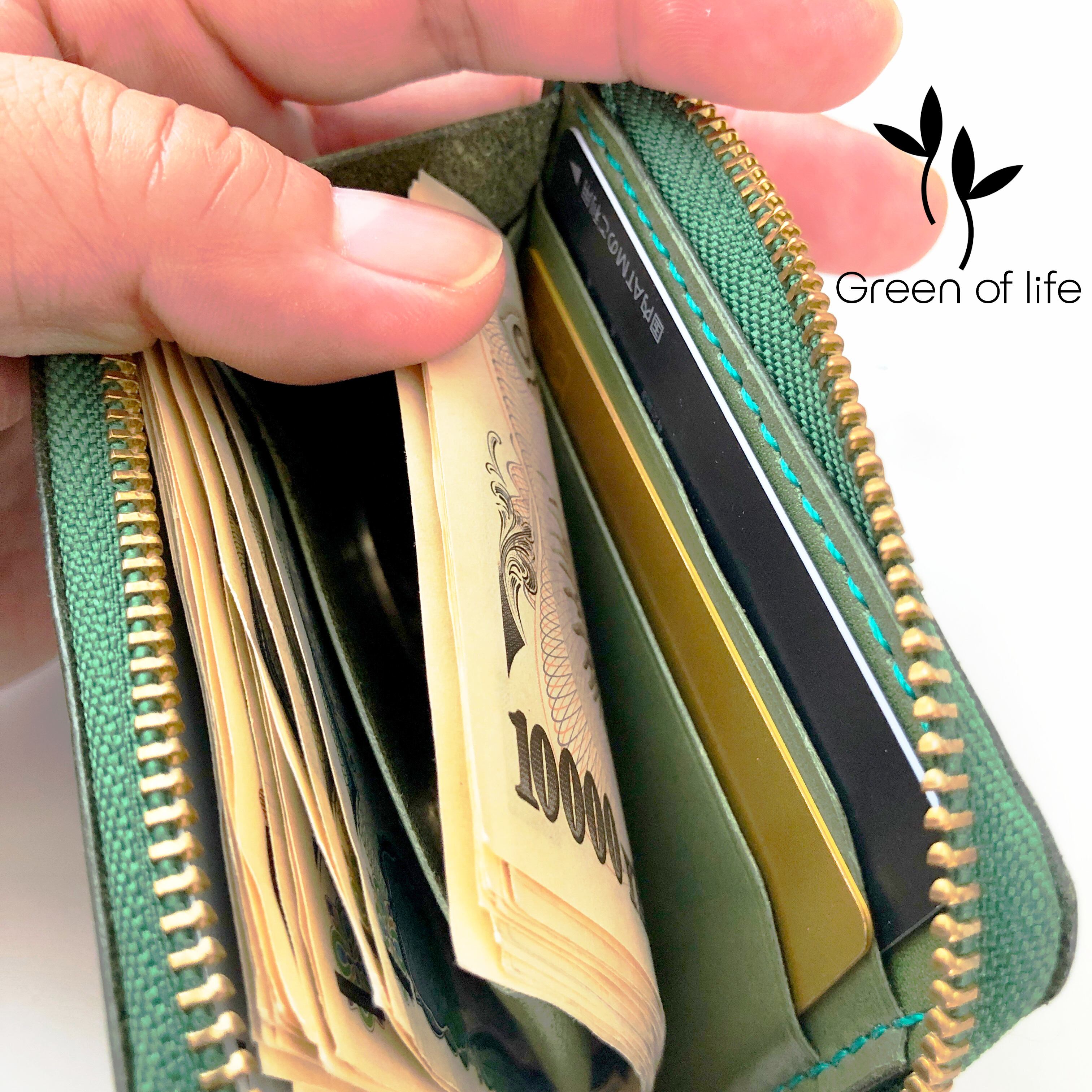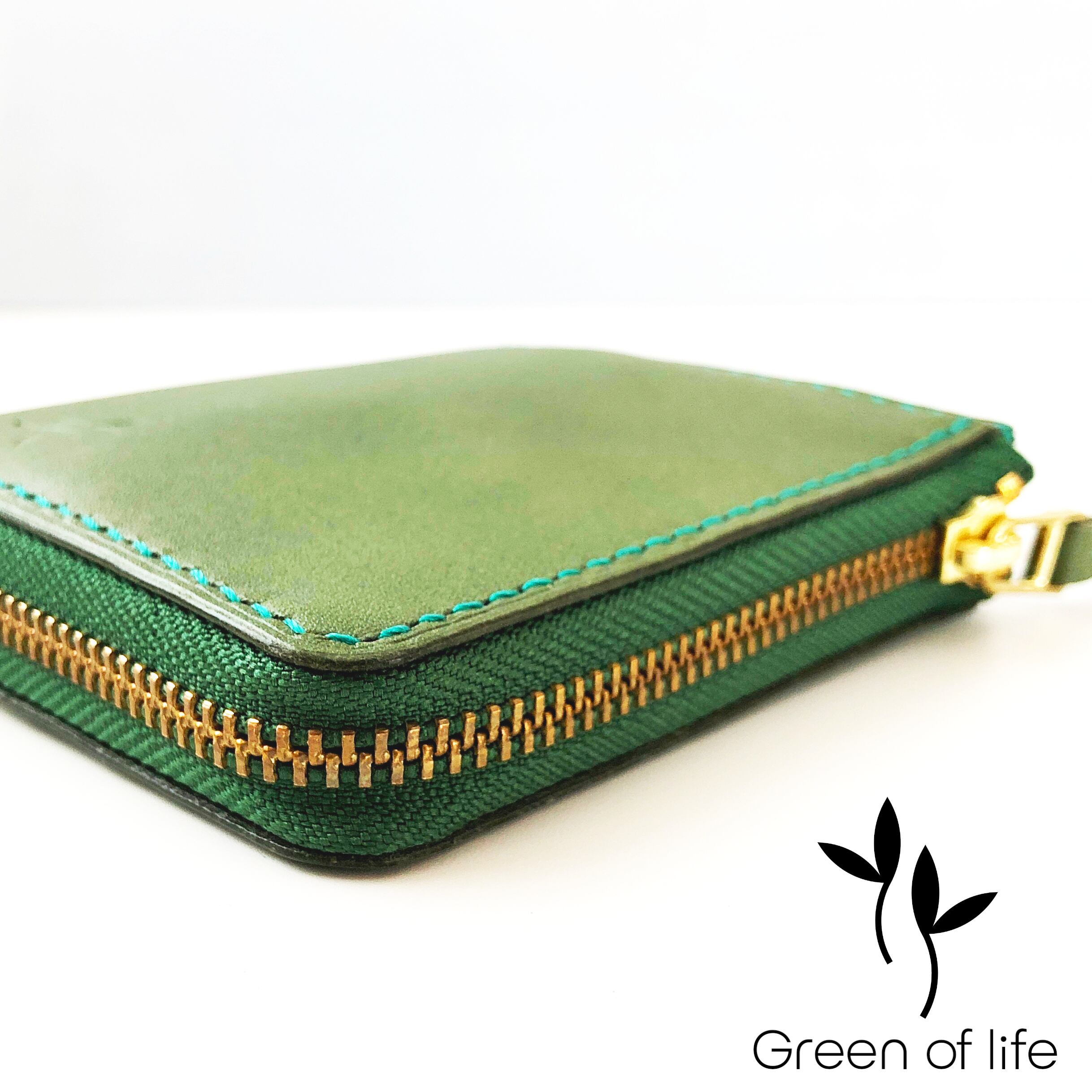 財布 レザークラフト グリーン