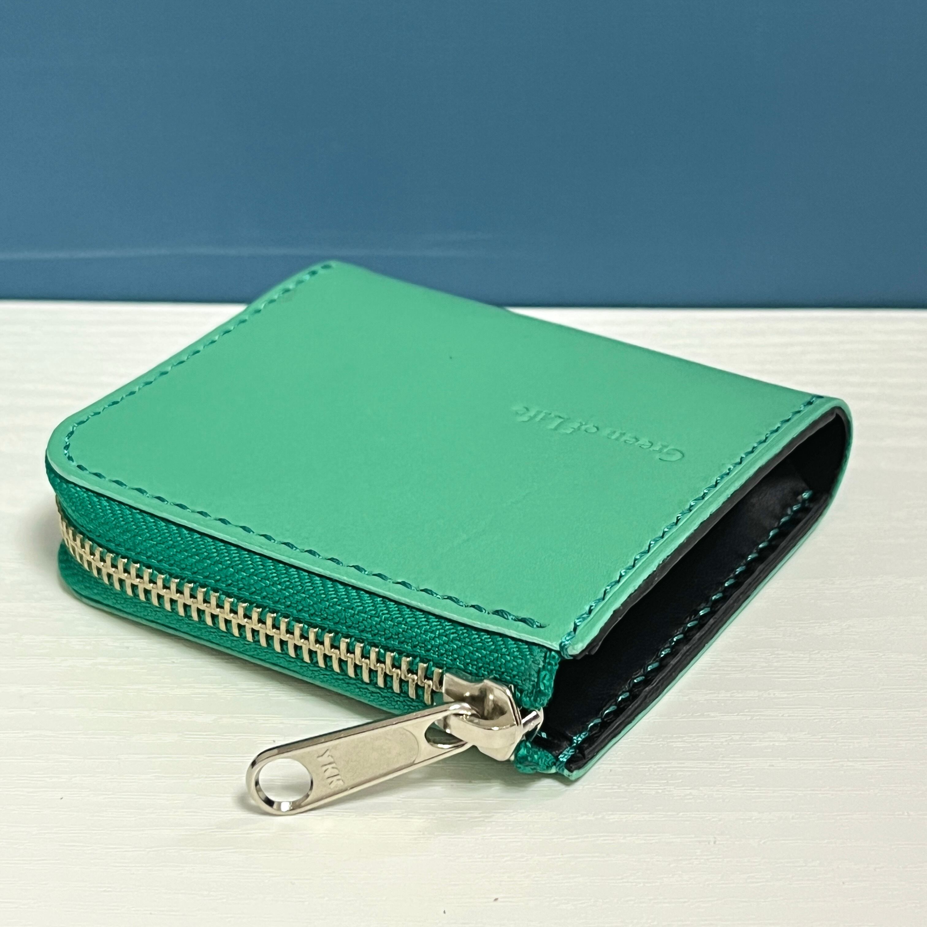 【 **柔らかな色でシンプルに楽しむ** 】本革の イージーウォレット ーミントグリーンー