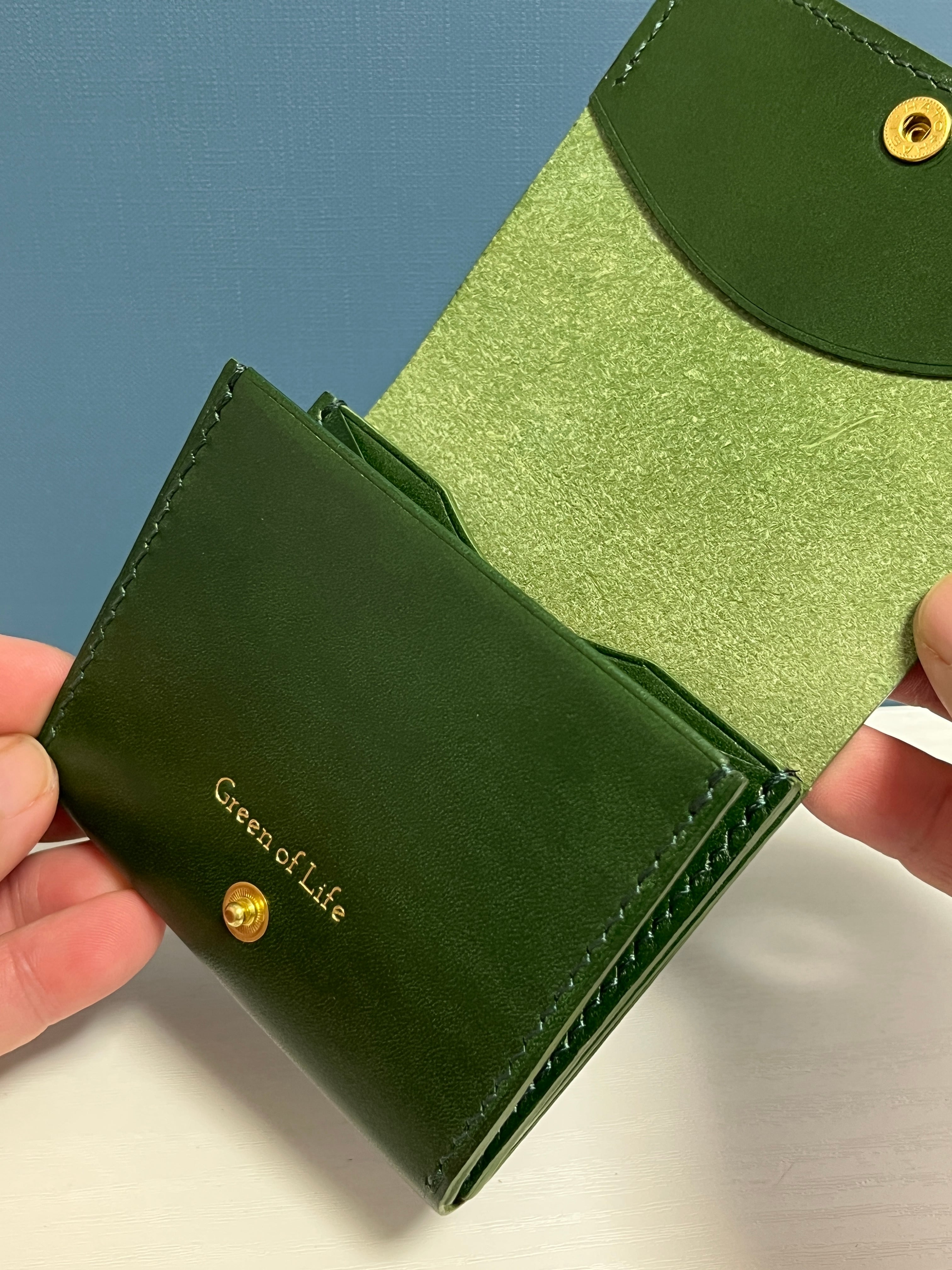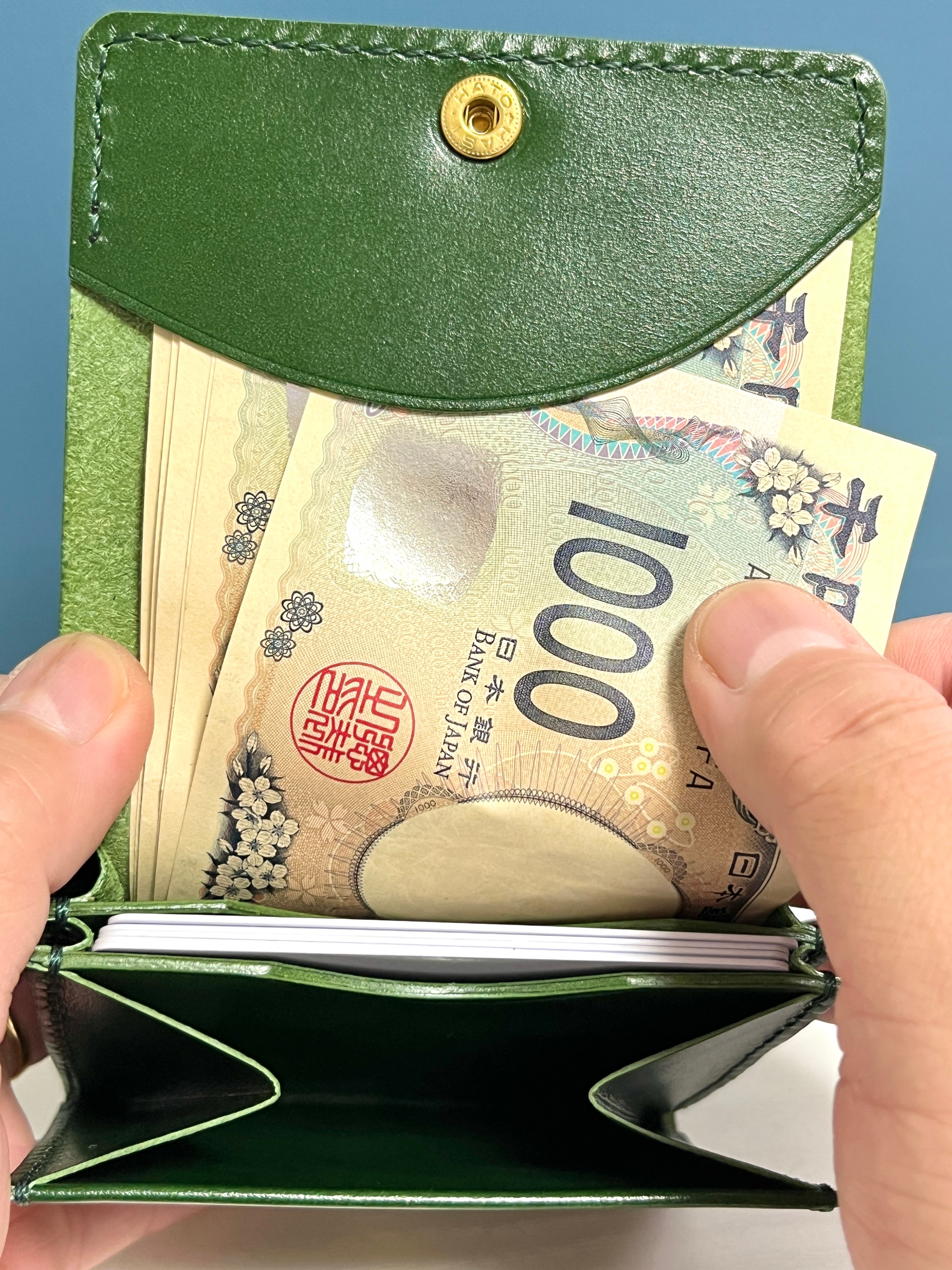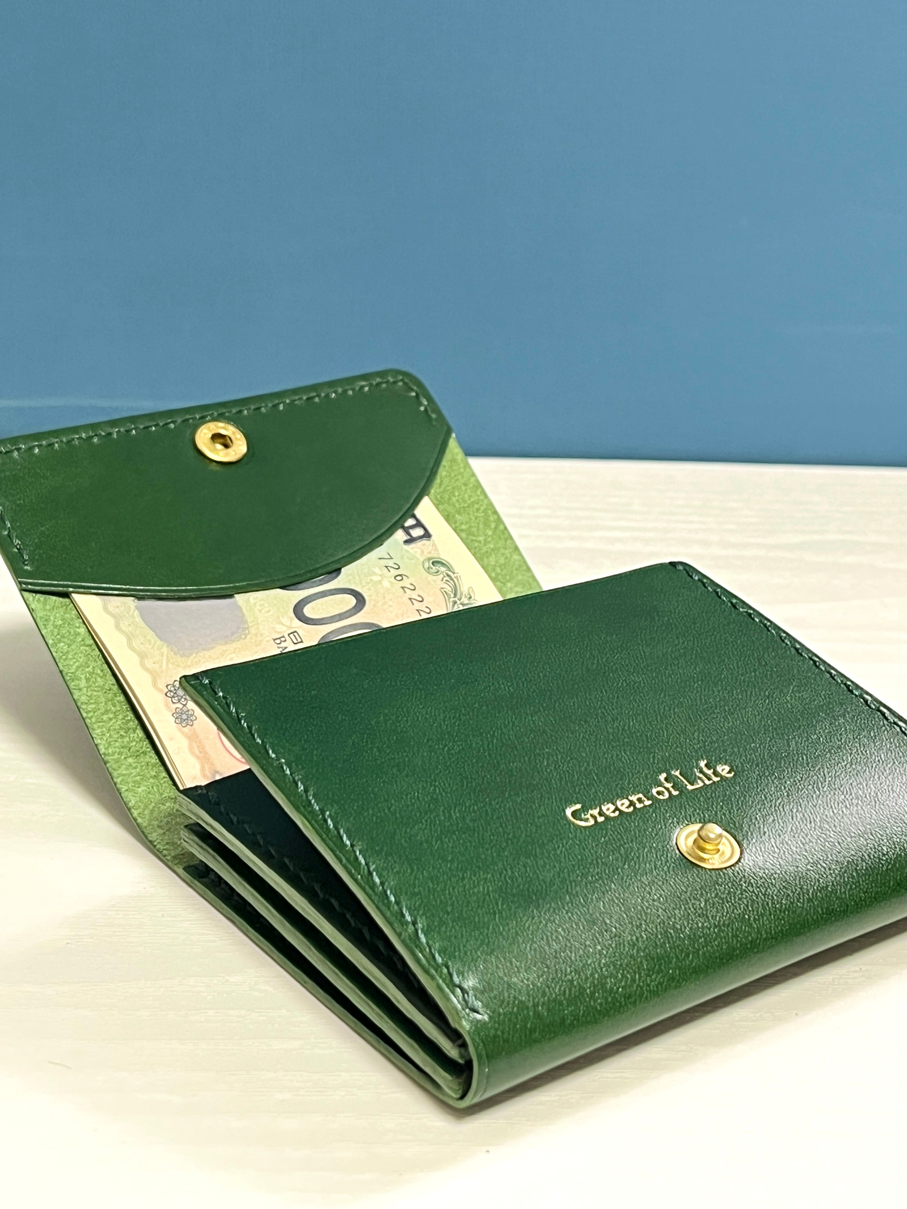 【˖**折らずに収める**˖】本革のレイフラットビルウォレット *グリーン*